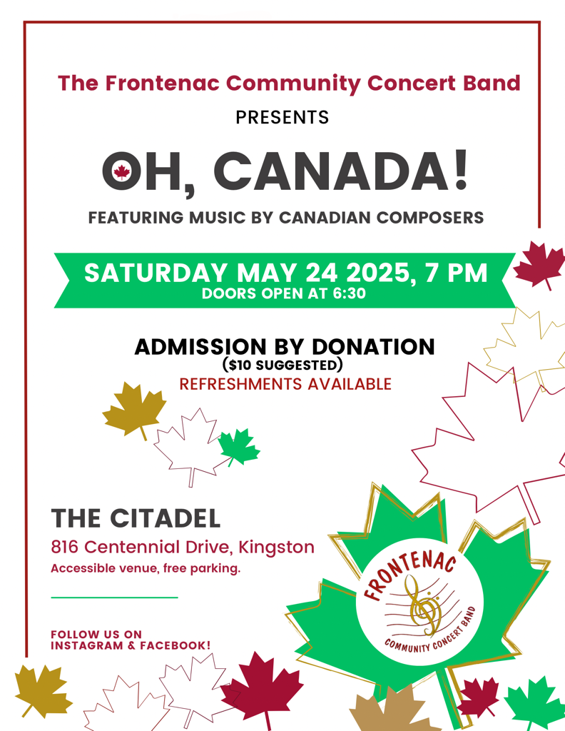 OH, CANADA! Spring Concert Sat. May 24, 2025 7:00pm The Citadel 816 Centennial Dr, Kingston Admission by donation ($10 suggested)