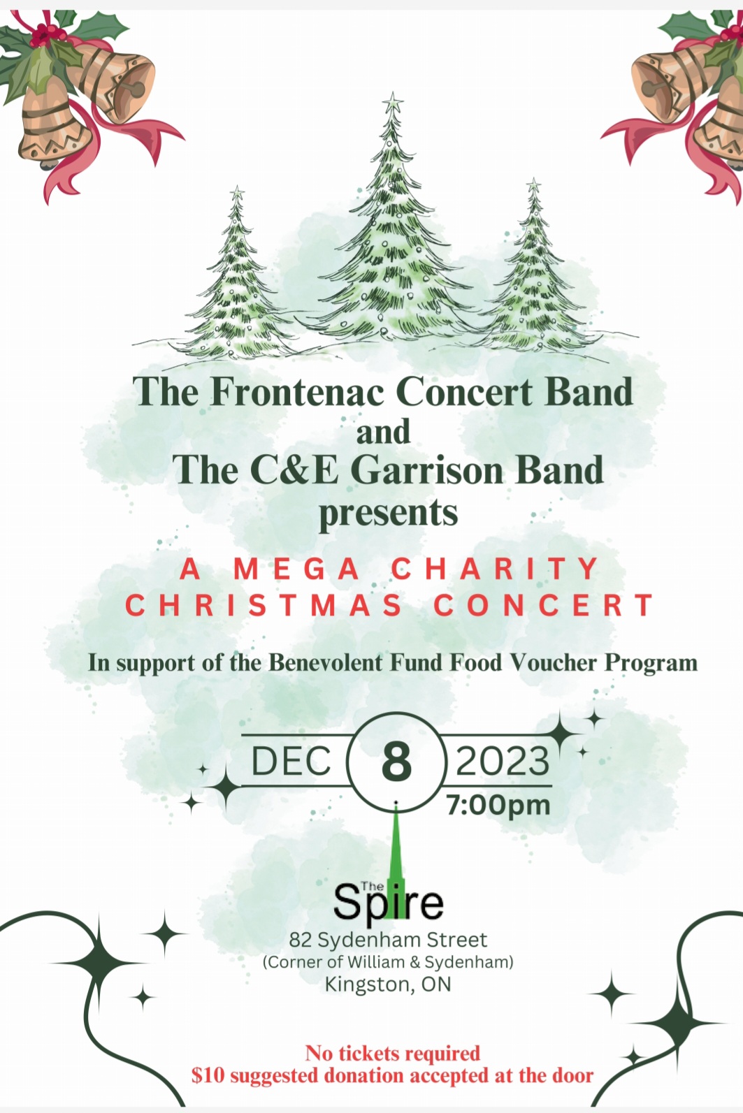 2023 Christmas Concert presented by Frontenac Concert Band + C&E Garrison Band Friday December 8, 2023 7:00pm The Spire 82 Sydenham Street |